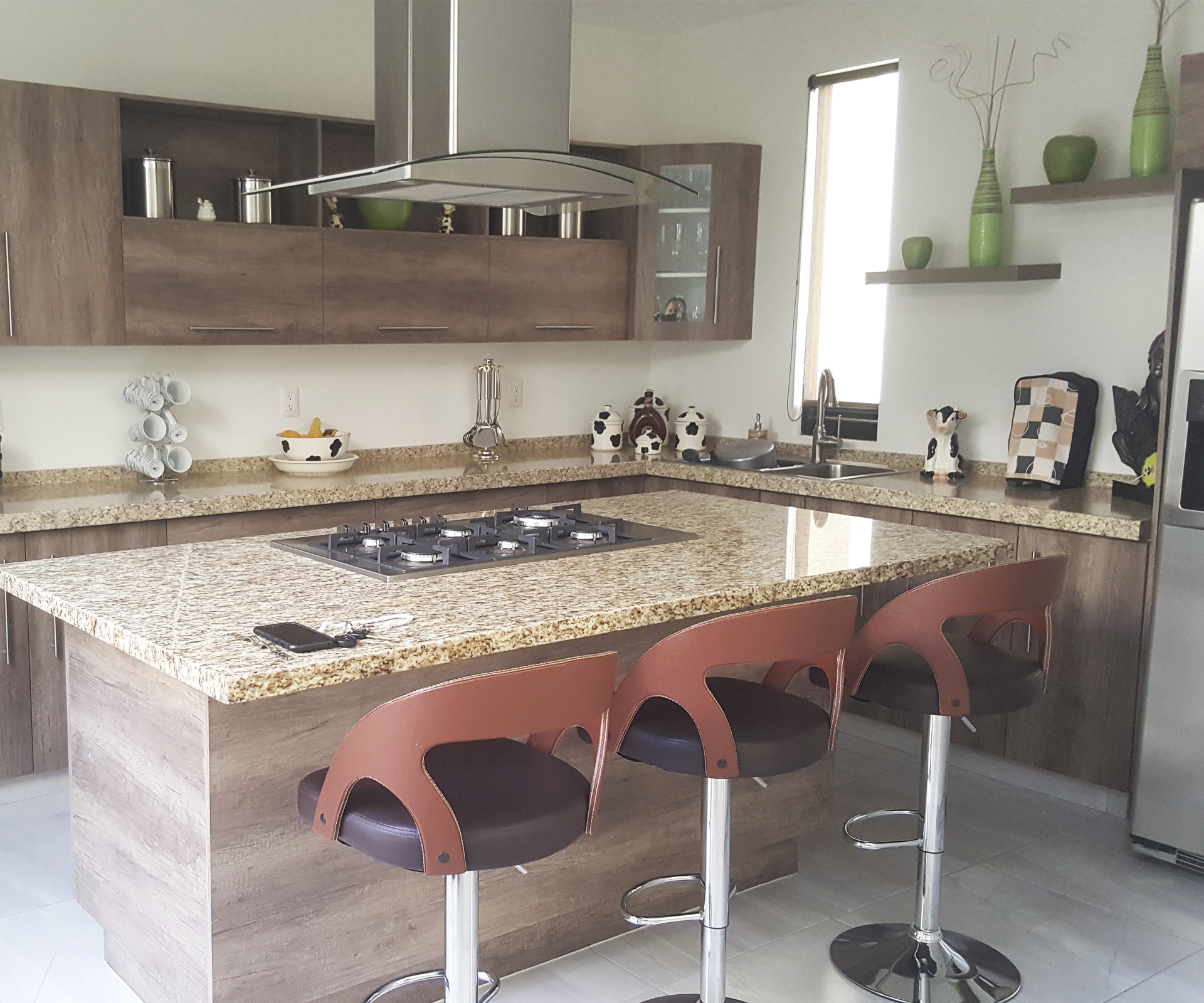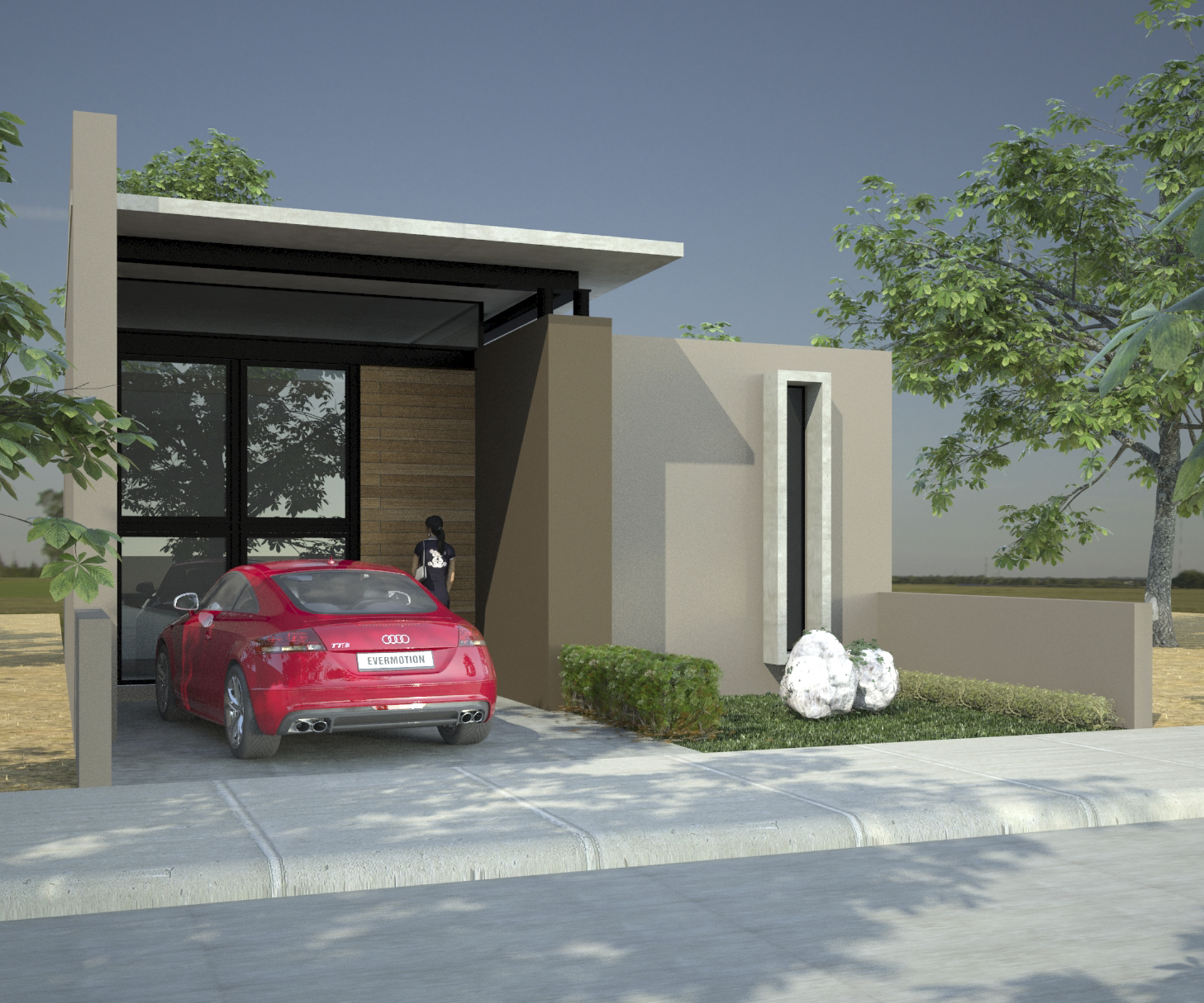 Este proyecto se desarrolla en una planta. Brindándole una altura y media en el acceso y una fachada acristalada que además del jardín interior en la zona de sala-comedor y cocina le dan al espacio una excelente iluminación y ventilación.