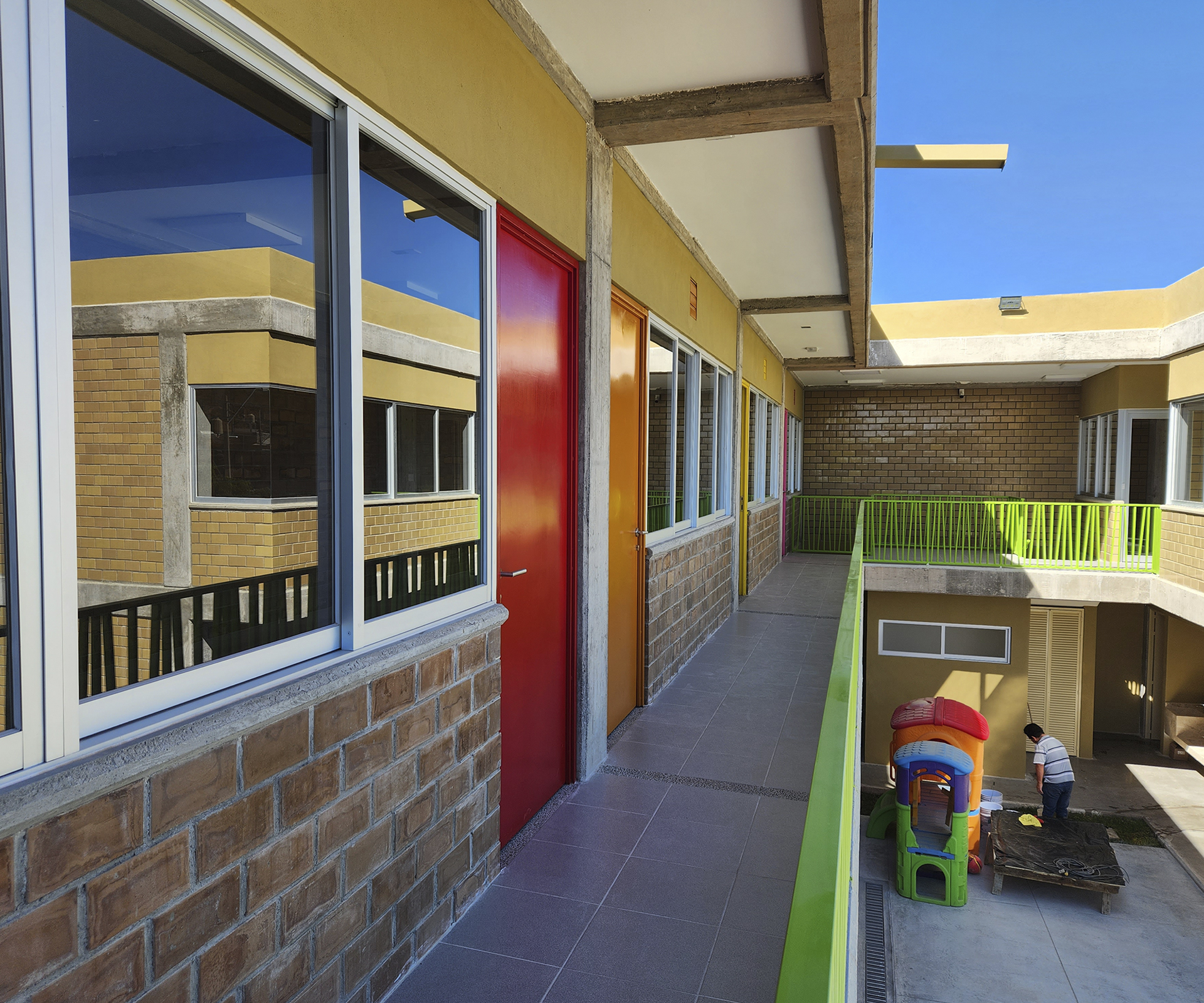 Debido a la sobriedad que nos exigían los materiales a utilizar para reducir al mínimo el mantenimiento del inmueble, se decidió agregar algo de color al proyecto en todos los elementos de herrería para quitarle la monotonía del block y el concreto aparente.