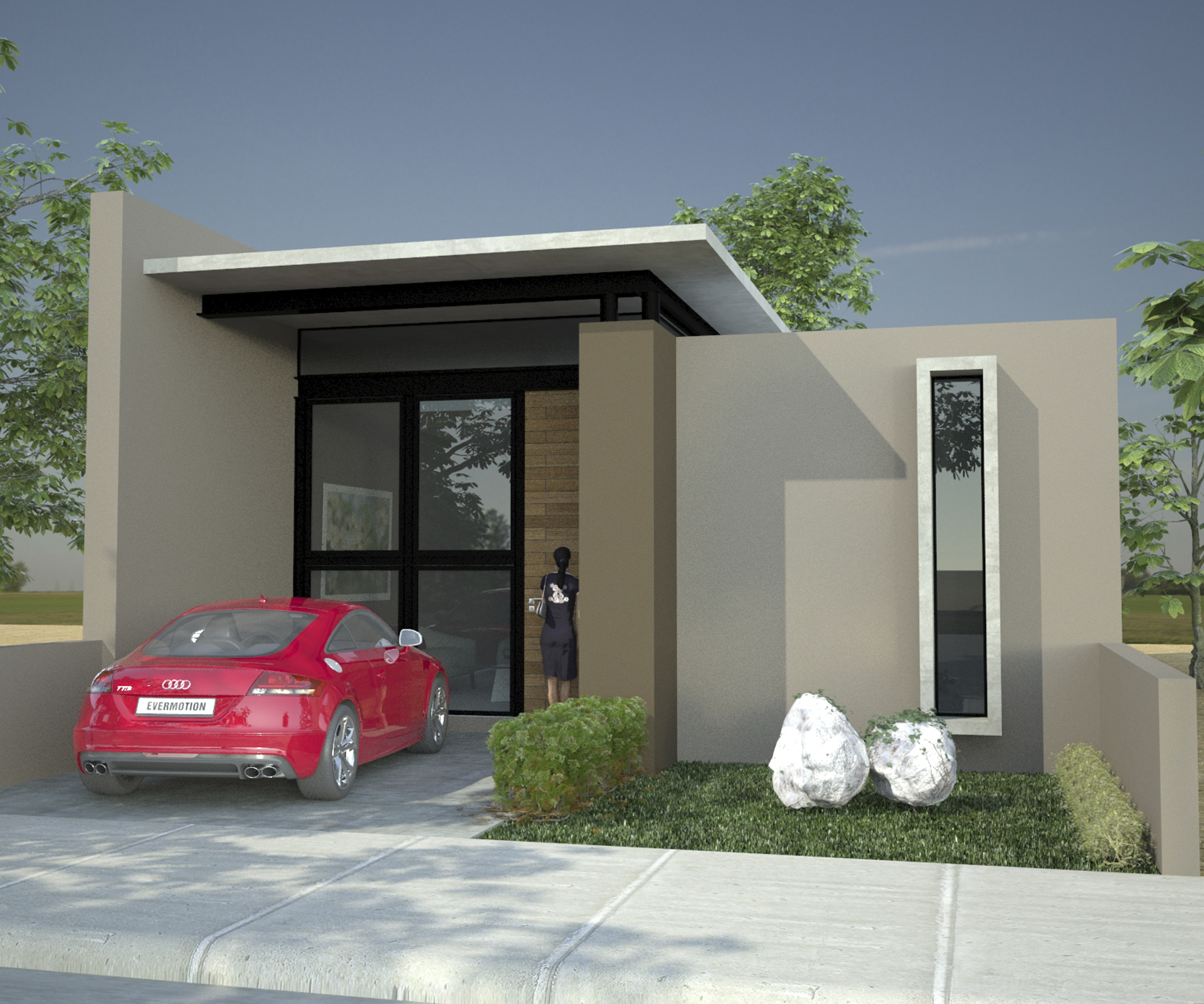 Este proyecto se desarrolla en una planta. Brindándole una altura y media en el acceso y una fachada acristalada que además del jardín interior en la zona de sala-comedor y cocina le dan al espacio una excelente iluminación y ventilación.